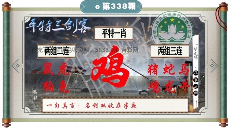 | 337期:【三行中特】【木火水】开:鸡09中 |